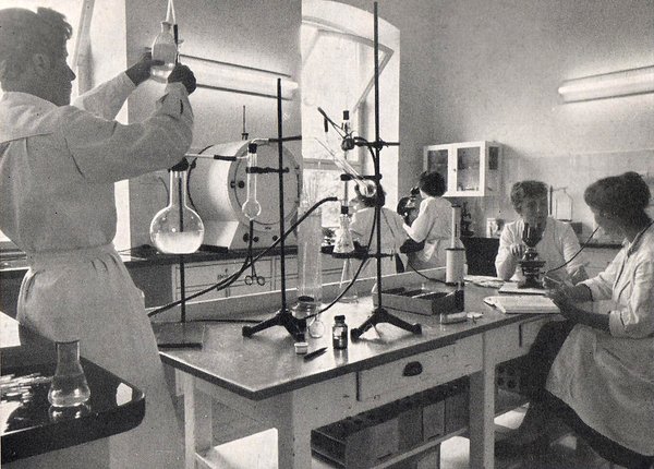 Durch die Ausweitung medizinischer Untersuchungsmöglichkeiten in den 1950er Jahren sollte die Modernität der Nervenklinik Landeck unterstrichen werden. (© Gerhard Mall/Adolf André: Pfälzische Nervenklinik Landeck, Landau/Pfalz 1958)